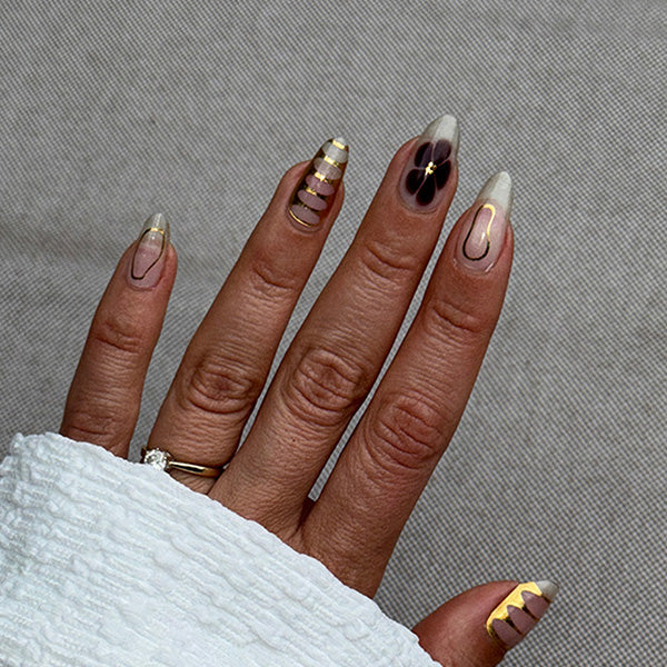 Each set is hand-drawn, then printed with real gel polish. After a two-week curing process, it’s sealed in protective black foil. Apply in just 10 minutes and enjoy flawless nails that last up to 3 weeks.